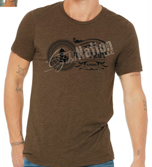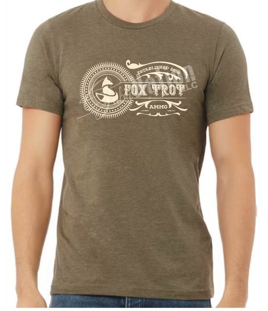 Short Sleeve T-Shirt, Vintage Fox Trot Ammo logo in antique white